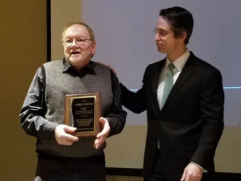 Founder Mark Chekola is presented with a plaque in 2020 showing the group’s appreciation for 16 years of dedication!
