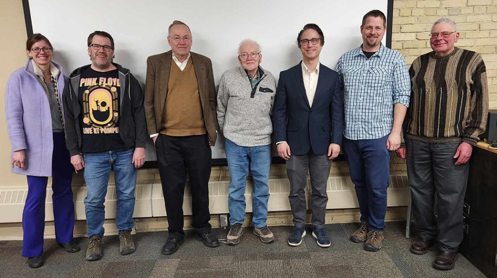 Some of our regulars posed for a photo after February’s meeting: Gwen, Paul, George, Mark, Bruce, Richard, and Oryn.